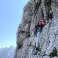 Letos smo »poletno« plezarijo začetek maja otovorili z Jakom, Dejanom in Janom J. (ČAO) v Krvavi smeri (V+/IV, 205m) v Vipavi. Luštna smerca, z nekaj naloženim skalovjem in lepimi razgledi. Par dni kasneje smo se z Nacetom in Igorčkom ogrevali v Šiji, snega je bilo takrat še toliko, da smo za sestop potrebovali tudi zimsko opremo. Par dni za tem sva šla z Nacetom prečit greben iz Zelenice do Palca. Sicer na greben nisva vstopila čisto na začetku, pridruživa se mu nekje nad tistim velikim balvanom. Na grebenu nekaj lažjega poplezavanja in bojevanja z rušjem, sta pa Zelenjak in Palec ful luštna, k lahko mal poplezavaš sem in tja.