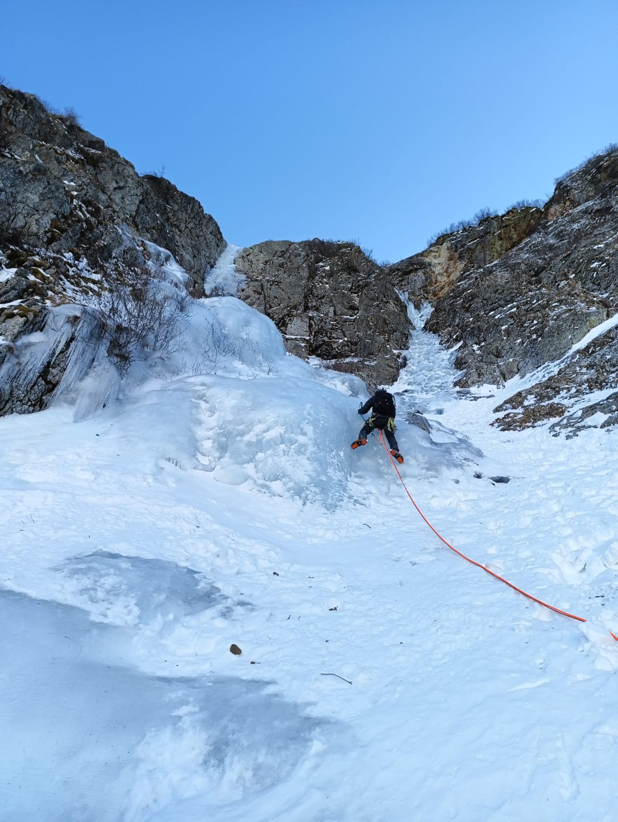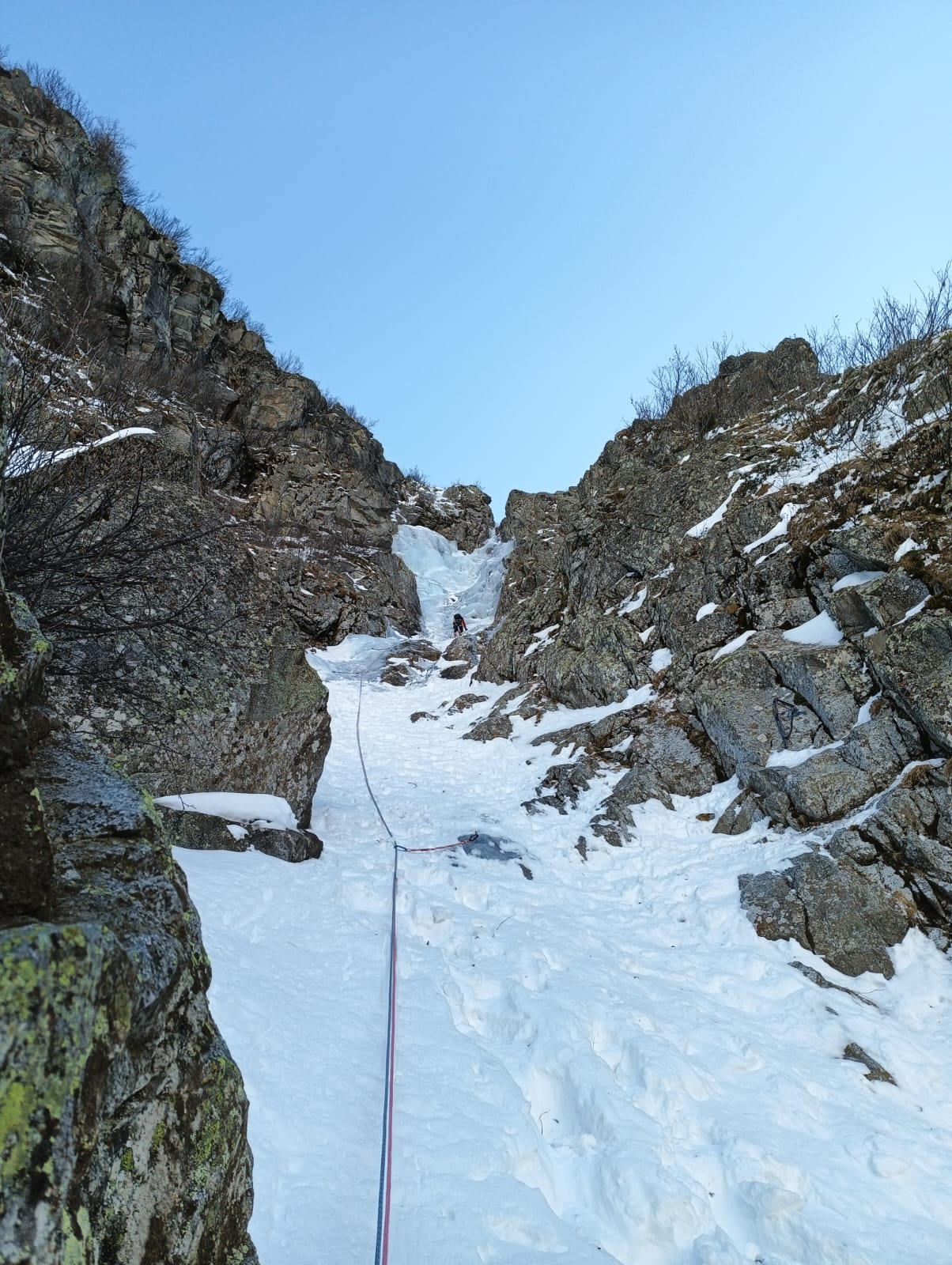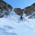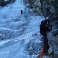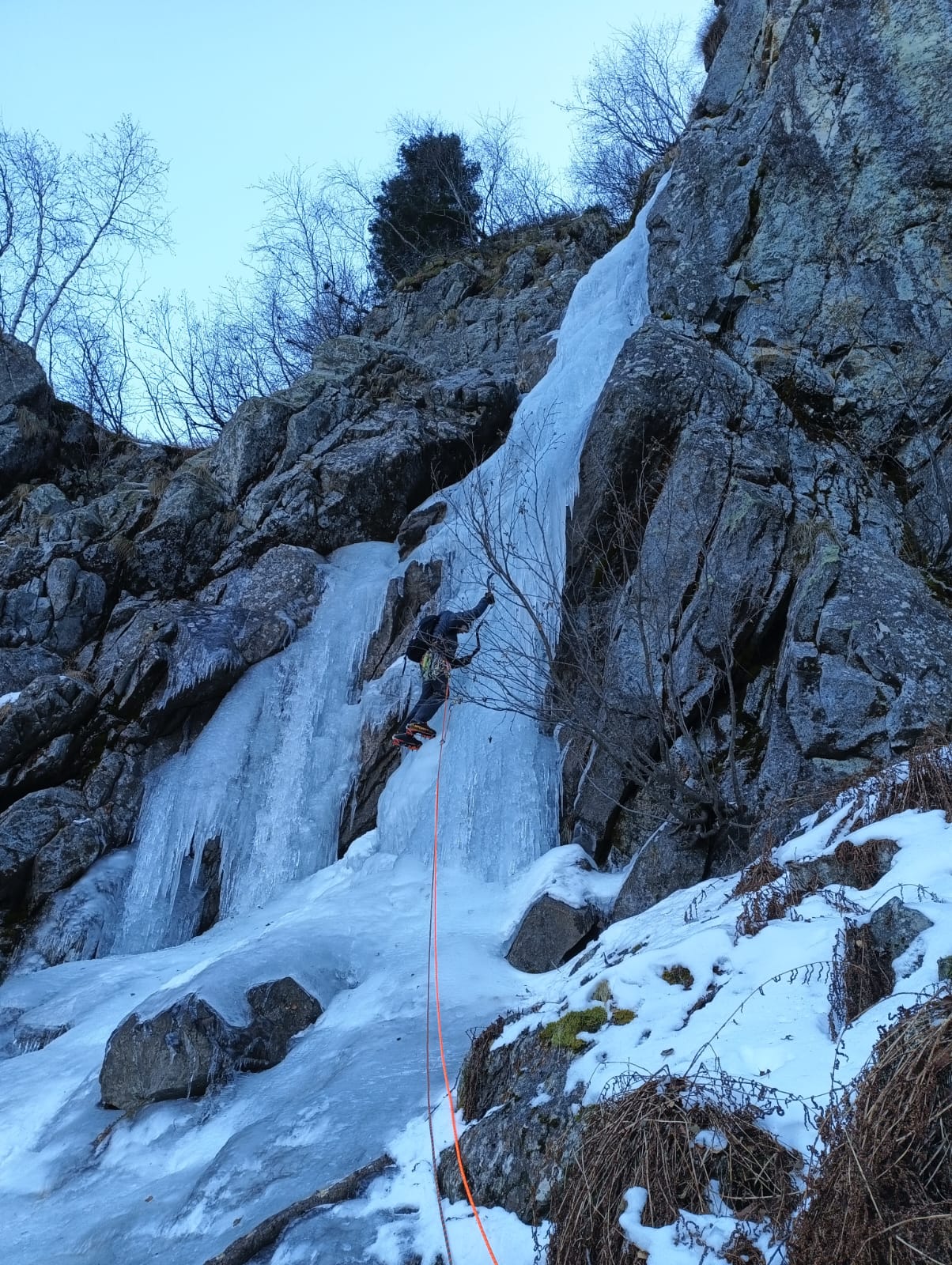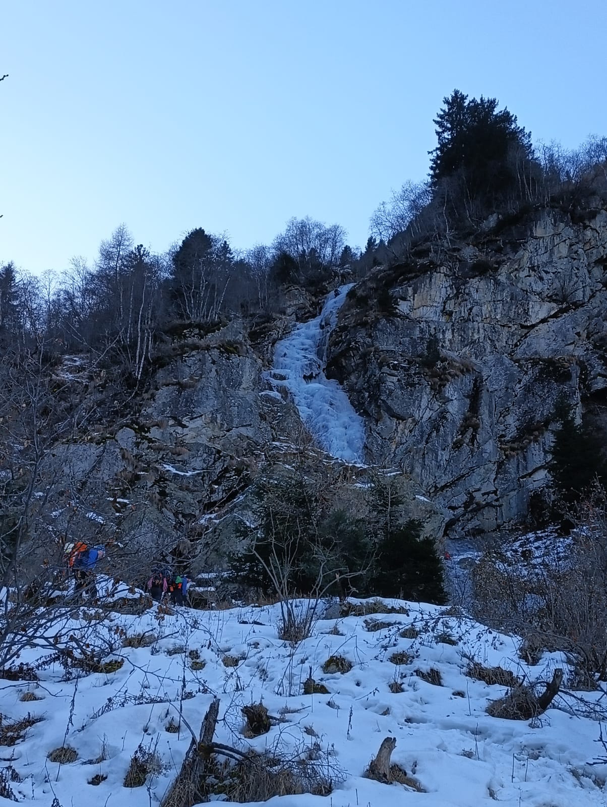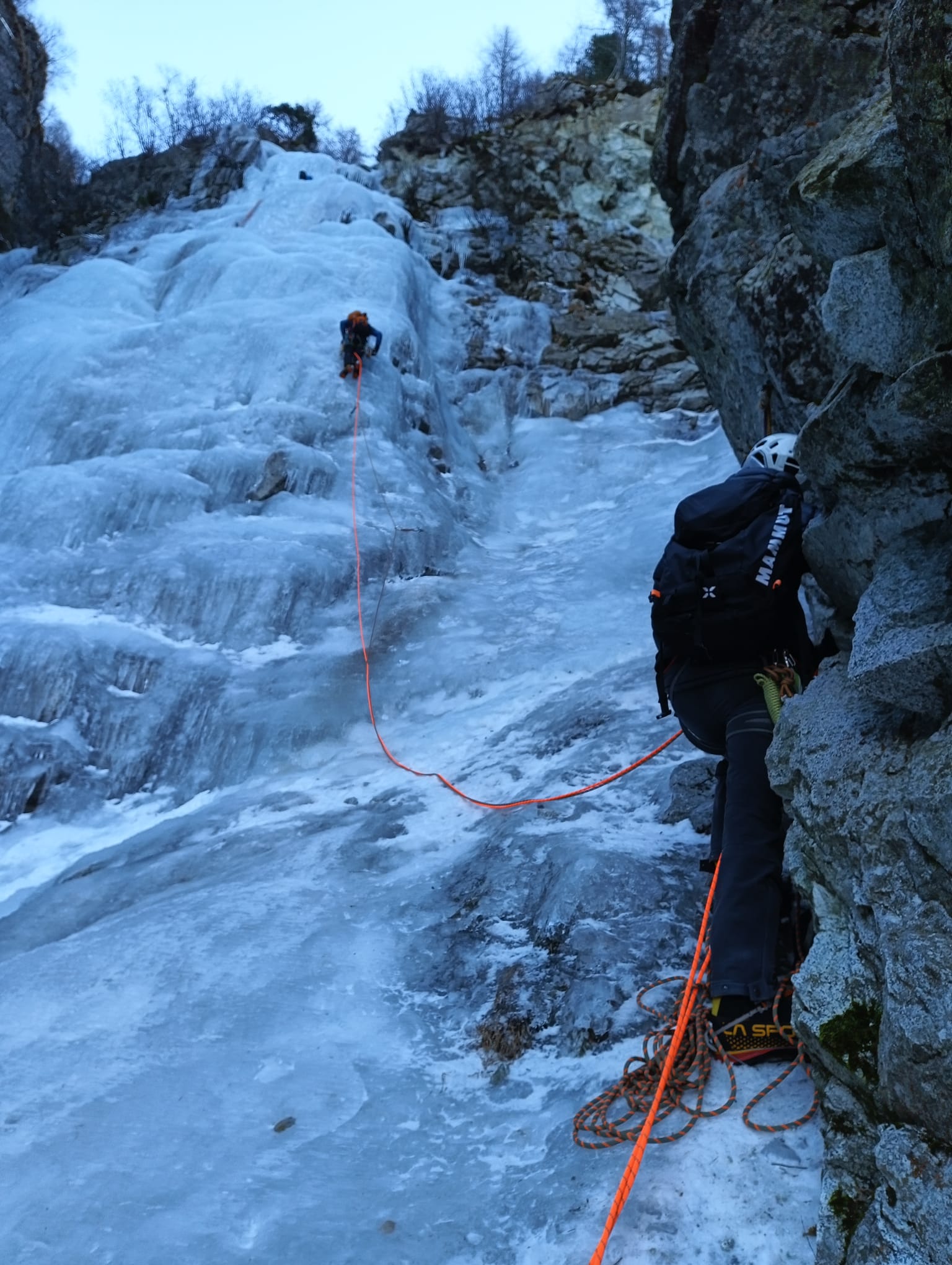 Sestavila se je štiričlanska ekipa ledu željnih gamsov, pridružila sta se še Tomaž (AO Ajdovščina) in Matjaž (AO POT). Izbrali smo nekoliko bolj oddaljeno lokacijo v južnih Retijskih Alpah, v bližini gorskega prelaza Tonale, v upanju da obisk slapov ne bo tako množičen kot v Dolomitih, kakor so poročali razni mediji. Najeli smo apartma v idilični vasici Capo di Ponte, ki je bil cenovno ugoden in lepo urejen. Ob prečenju omenjenega prelaza smo spoznali, da je snega v okoliških gorah precej malo, zaradi nizkih temperatur preteklega obdobja pa so bili slapovi povsem zadovoljivo narejeni. Kot zanimivost bi dodal, da je tip skale na tem področju granit. Ker smo bili ravno na prelazu, smo parkirali na parkirišču bližnjega smučišča in spotoma napadli slap Passo del Tonale, WI3, 150 m, ena naveza levi krak, druga naveza pa desni krak. Dostop poteka po markirani poti desno od smučišča, približno 45 minut. Kljub nizki oceni vsaj desnega kraka, ki sva ga splezala s Tomažem, ni bilo podcenjevati, saj je v trenutnih razmerah naklonina v njem dosegla približno 80-85 stopinj. Levi se je izkazal za malenkost lažjega. Sidrišča so urejena, običajno gre za kombinacijo svedrovca in skalnega roglja ali pa dveh svedrovcev. Do vznožja slapov smo se spustili po vrvi. Naslednji dan smo se odločili za dolino Val Paghera, kjer je še največ slapov srednjih težavnosti. V zatrepu doline pod slapovi je koča Rifugio alla Cascata, kjer nudijo odlične lokalne jedi in kjer sem ob tej priložnosti jedel najboljši golaž (gulaschsuppe) od kar pomnim . Izbrali smo si slap Albero di Natale, WI3+, 120m, srednji, največji krak od treh krakov tega slapu. Ta je bil najlepše narejen, pa še ta je imel na polovici manjši skokec. Sestop do vznožja slapov poteka po stezici na desno stran, mimo zapuščenega objekta (žičnica?), delno po markirani poti. Slapovi tu še niso bili v popolni formi, bodo pa kasneje zagotovo za vriskat. Tudi tretji dan smo izbrali dolino Val Paghera, saj smo imeli ogledan slap Pagherauno, WI3, 150m. S tega je že malo kapljalo, v tem delu Italije je bila namreč močna inverzija, zato smo večino slapu pikali po putru. Kljub višini približno 1700 mnv in severni legi je bila temperatura malo na ničlo. V tem slapu ocena prav tako ni povedala vsega, saj je bil vstopni skok precej strm, okoli 80-85 stopinj. V raztežajih višje pa so ena za drugo sledile lepe kaskade in naklonina je precej popustila. Na vznožje smo se spustili po vrvi. Drugi in tretji dan smo se seveda zataknili ob in v koči, zato nas je zelo prijazni lastnik koče do izhodišča, kjer smo parkirali, zapeljal s svojim terencem. Zadnji dan smo izkoristili za ogled trgovin s plezalno opremo in stojnic v prazničnem Arcu.