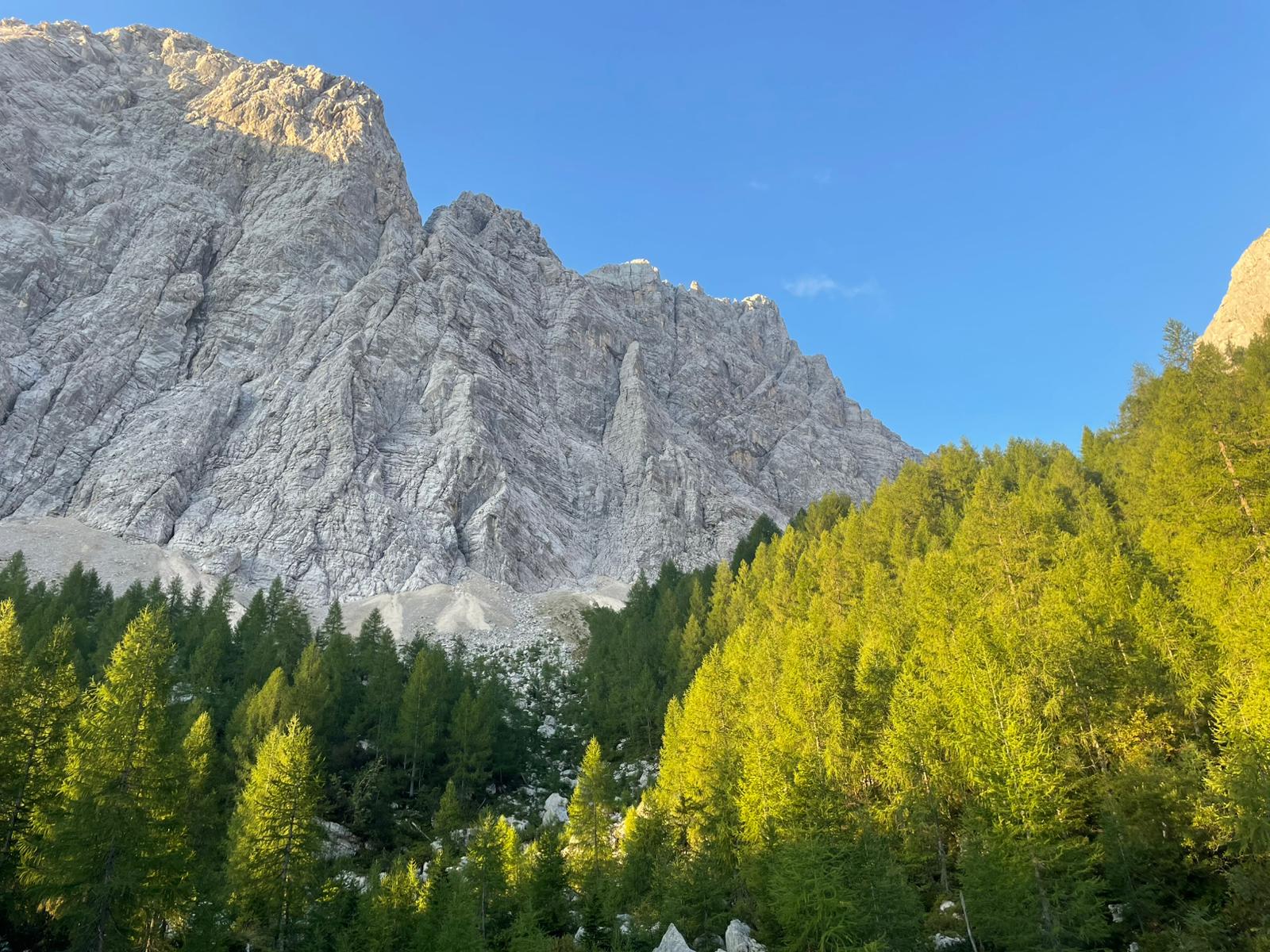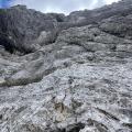 Z Majem sva izkoristila okno stabilnega vremena in v torek skočila v dolino Krme. Cilj je bil lepa in popularna smer Dolar-Kilar-Vavken iz leta 1951 v tako imenovanem Trapezu, kot se imenuje ta del ostenja. Za Maja je bila smer še toliko bolj mikavna, saj je prej še ni plezal, jaz pa sem bil v smeri drugič. Prvič sem jo namreč plezal pred devetimi leti z Jurijem Rousom, kolegom iz Črnuškega ao. Naveze včasih to turo razdelijo na dva dneva zaradi daljšega dostopa, midva pa sva se odločila biti malo bolj zgodna in opraviti vse v enem dnevu. Z orientacijo nisva imela težav, saj sem se jaz še spomnil dostopa in večjega dela smeri. O sami smeri ne gre izgubljati besed, je pogosto plezana, odlikujeta jo odlična skala in navpična stena. Z Majem sva se dogovorila, da začneva tako, da v vodstvu ne dobim istih raztežajev, ki sem jih kot prvi plezal nazadnje. Tako je on dobil prvi detajl smeri, navpično in gladko zajedo v drugem raztežaju, jaz pa previsen buhtelj-zajedo v petem raztežaju nad udobno poličko, v Slovenskih stenah opisano kot najtežji del v smeri. Po pravici sem se tu malo namatral, saj za noge ni kaj dosti, za roke pa nekaj stranskih prijemov, previsi pa tudi niso "my cup of tea" . Naprej težave počasi popuščajo, čakale so še zelo lepe plati V- in znamenita votlina. Za izstop iz smeri pa sva z Majem izbrala najpogosteje uporabljano izstopno grapo, ki pripelje iz stene na rob travnatega pobočja. Kot zanimivost bi dodal, da sva z Jurijem prvič izstopila po originalnem izstopu, čez nekakšne krušljive in naložene plošče proti desni in skozi okno, čemur je brez dvoma takrat botrovala zvedavost in bolj hribovska, scramble mentaliteta.Ta originalni izstop pa vodniček Slovenske stene celo odsvetuje, in sicer ravno zaradi velike krušljivosti. Sestopala sva po grebenu čez Tosc, naprej pa po poti mimo Vodnikovega doma in čez Bohinjska vratca nazaj v Krmo. Ponovno sem spoznal, da gre za odlično smer v čudovitem ambientu, ki jo je vredno še kdaj ponoviti.
