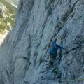 Sicer pa smer postreže z lepo plezarijo, kamnin je lažji zlezst brez ruzaka, če imaš majhen ruzak gre. Priporočljiv set frendov, možnosti za zatikanje je veliko, štanti in smer je drugače nabita.