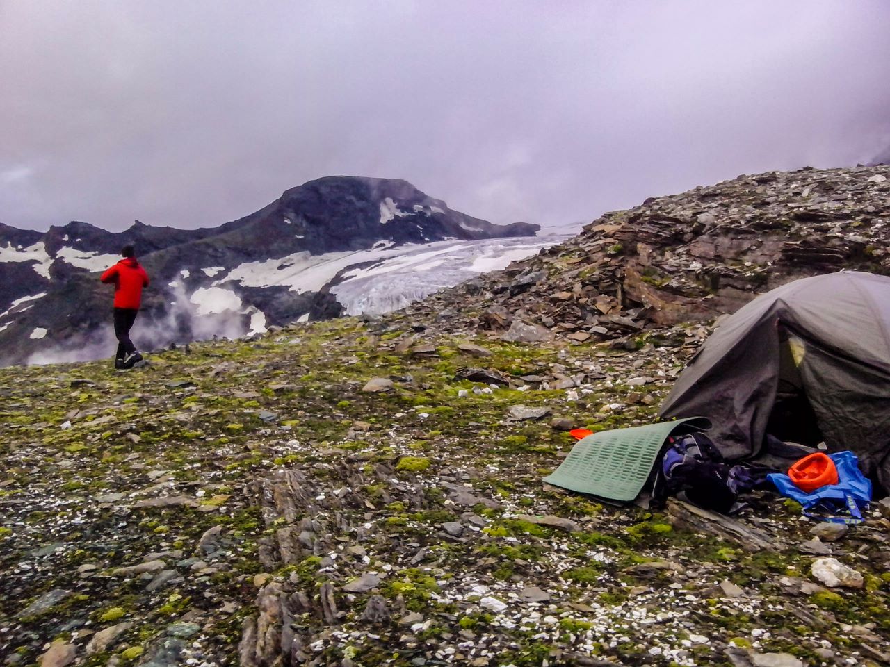 . Sestopila sva po normalni smeri nazaj čez ledenik do najinega šotora, katerega sva postavila že na dostopu pod ledenikom. Naslednji dan pa sva sestopila nazaj do avta.