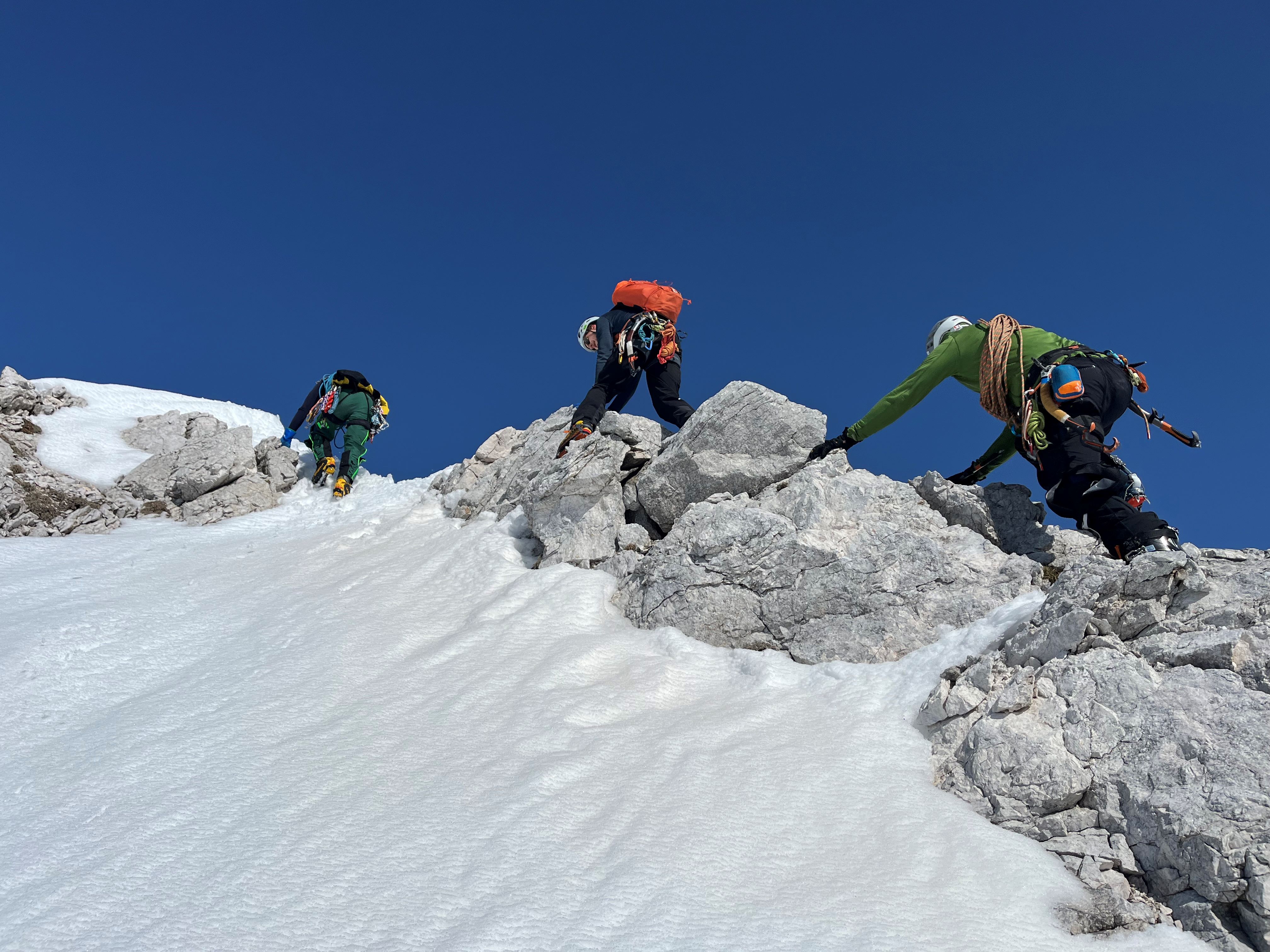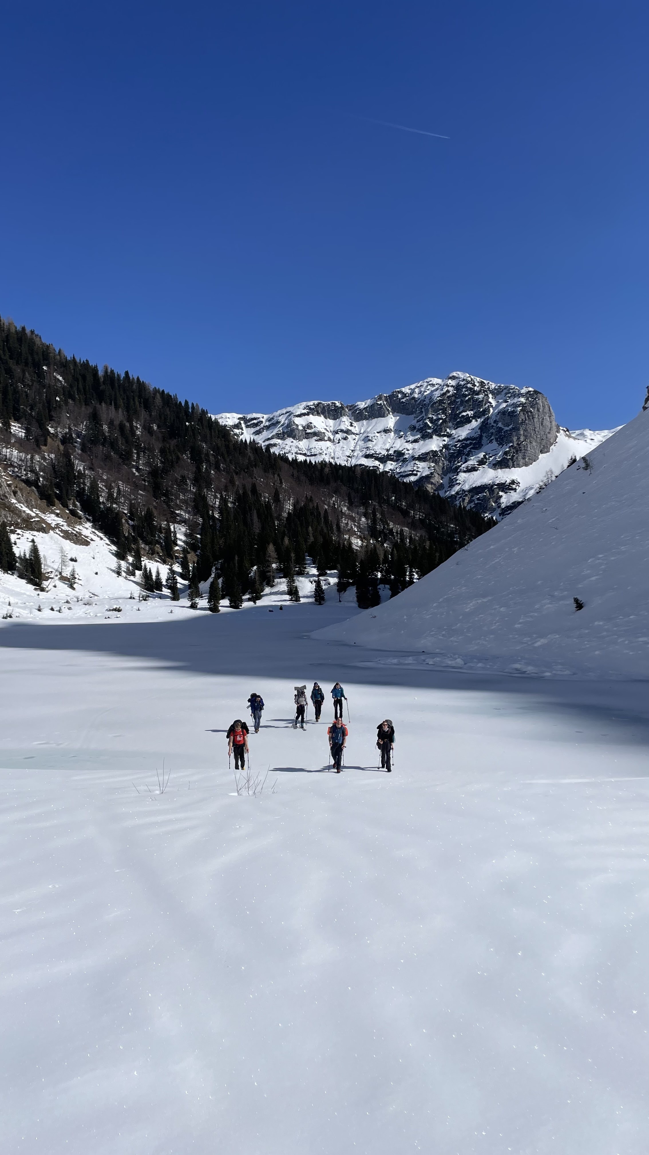 Za vikend 7., 8.3. smo izkoristili idilično zimsko vreme ter izvedli turo v sklopu izobraževanja za starejšega pripravnika, ki letos po nekaj letih ponovno poteka na našem ferajnu. Cilj ture je bil bivakiranje v snežnih luknjah ter plezanje v severni steni Krna in bližnji okolici.