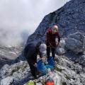 Še jaz pristavim svoj lonček letošnjih vzponov: sezono sva s Petrom otvorila s prečenjem Zeleniških špic. Lahnega koraka s štrikom v nahrbtniku sva se nekje 4 ure sprehajala gor in dol po špicah, nekje na sredi ujela meglo (ali pa je ona naju?) in se po malici na Najvišjem robu podala še na z droni obkroženo Planjavo. Dva tedna kasneje sem se Toniju in Petru vštulila v Gerčak-Grčar. Popotovanju čez kompaktno steno Vežice je sledilo popotovanje po morju borovcev v iskanju sestopa. Na srečo me fanta nista poslušala dovolj, da bi sestop podaljšali še na drugo stran Lučkega Dedca... Nekoliko krajša kondicijsko-uplezovalna tura je sledila v Mali Rinki, Igličeva, s Tonijem in Krejmerjem. Še najbolj adrenalinski del je dostop preko snežišča z niti-nočem-vedeti-koliko globoko krajno zevjo, sicer pa sem popolnoma nasedla informacijam z interneta in pričakovala razodetje-oh-in-sploh oz. vsaj smer kova DKV, a v KSA. Idiličnega plezanja je za previs in prečko v desno, tista čudovita plata je še kar povprečna, s kamni predhodnikov pa si obstreljan točno tako kot vsepovsod drugod.