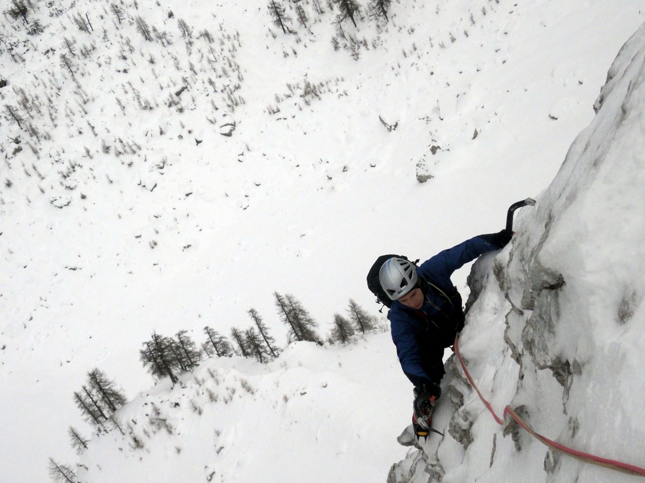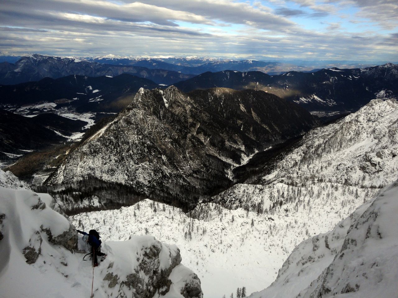 14 dni nazaj se je nama z Rokom mudilo na občni zbor in je zmankalo časa, da bi jo lahko slpezala do konca. Med abzajlanjem sem v smeri pustil še en zatič. Danes sva z Martinom (AO Radovljica) splezala, pobrala zatič in uživala v dobrem plezanju.