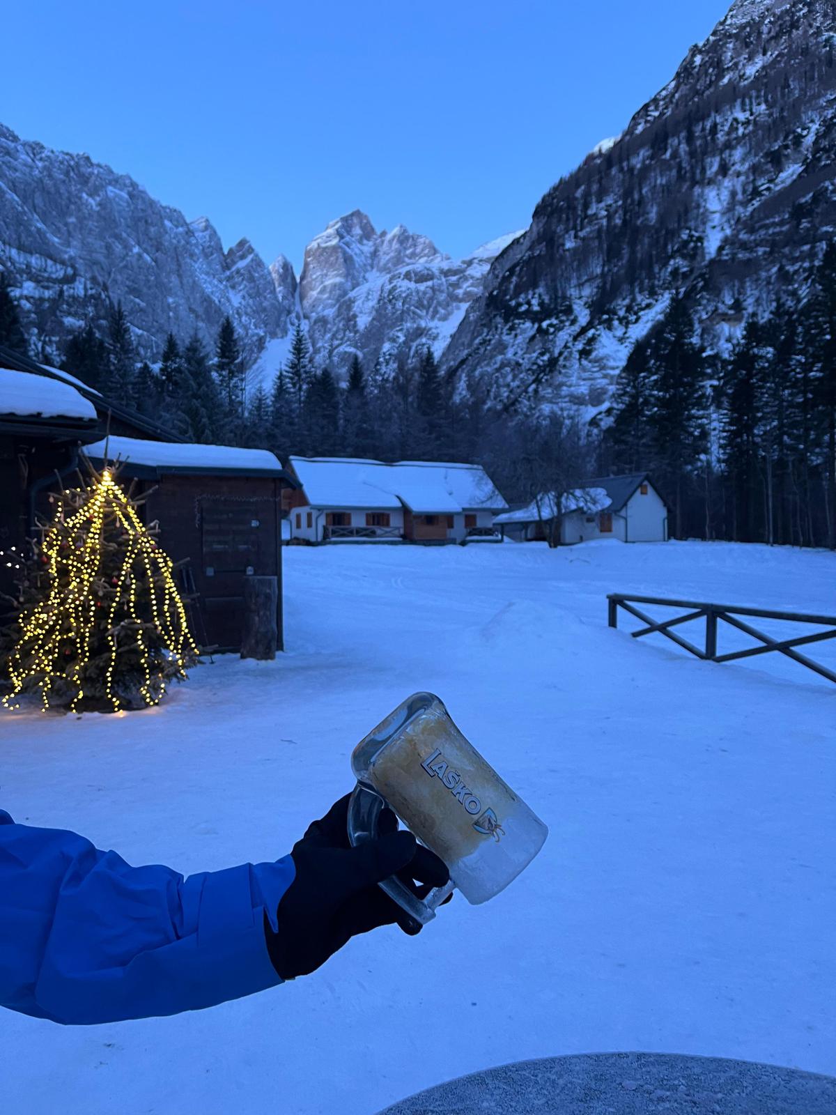 Tam srečamo štiri razposajene goste, ki so v Tamar prišli s sankami. Malo se zagovorimo in v hecu vprašamo, če imajo kakšne sanke preveč. Zgleda, da nam niso najbolj zaupali, saj so, ko smo se odpravili, prestrašeno pogledovali skozi okno, ena njihova članica pa je prišla ven, in v smehu rekla, da so jo poslali na stražo. Mi smo še zadnjič žalostno pogledali proti štirim sanem, ki so čakale pred domom, in nato peš nadaljevali proti Planici. Na poti sva najprej jaz, potem pa še Sandi, po precej teatričnih padcih ugotovila, da je podlaga precej ledena, Beno in Gal pa sta se kljub parim spodrsljajem uspela celo pot držati na nogah.