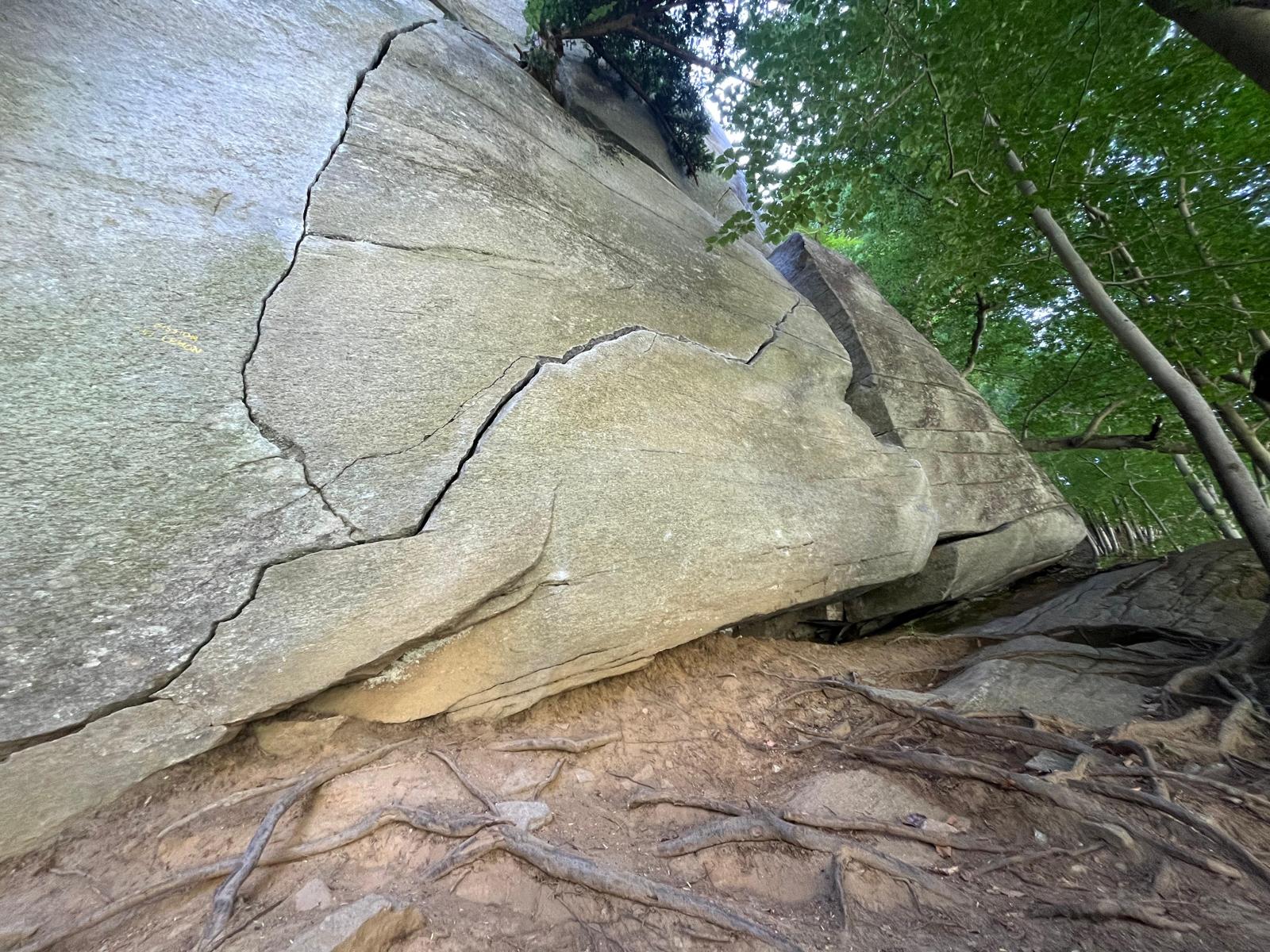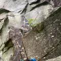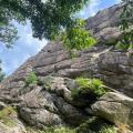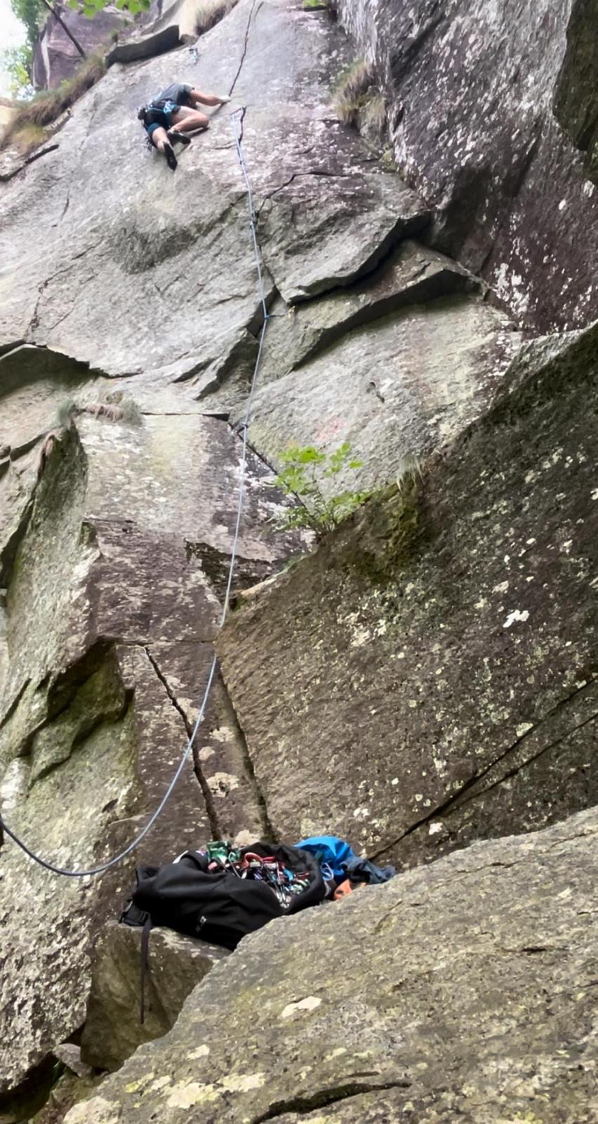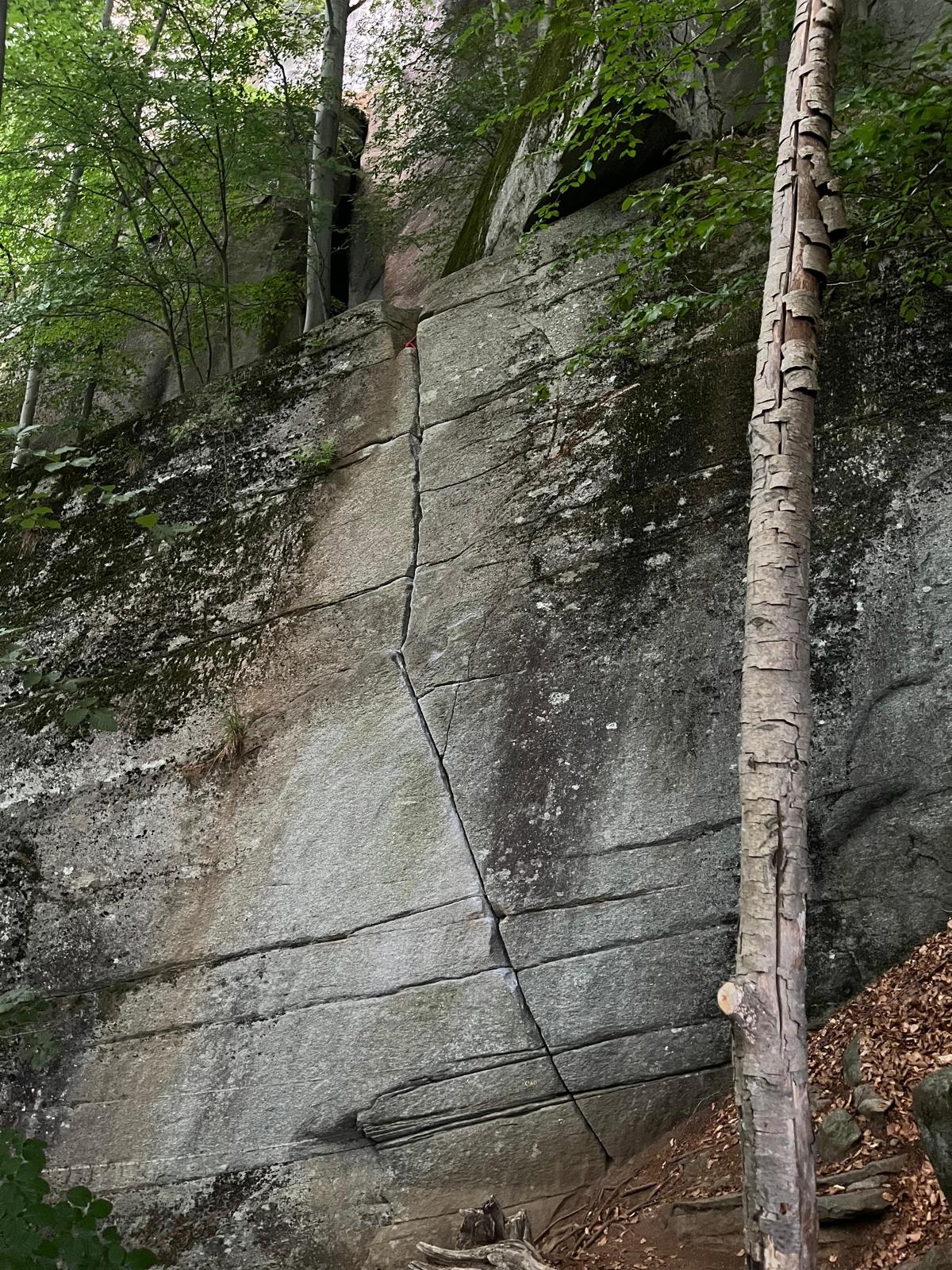 Pozno popoldne so naju pričakale osupljive stene. Granitni monoliti z razpokami vseh velikosti in oblik, skozi plezališče pa police, ki omogočajo preprost dostop do smeri. Idealno plezališče, obdano s senco bukovega gozda.