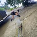 Prvo smer, Ciao 5c, si napeljeva na top rope in sprobava, kako frendi držijo v skali. Kljub metanju, se ni izpulil noben, kar nama je dalo samozavest, da splezava kakšno tudi naprej.