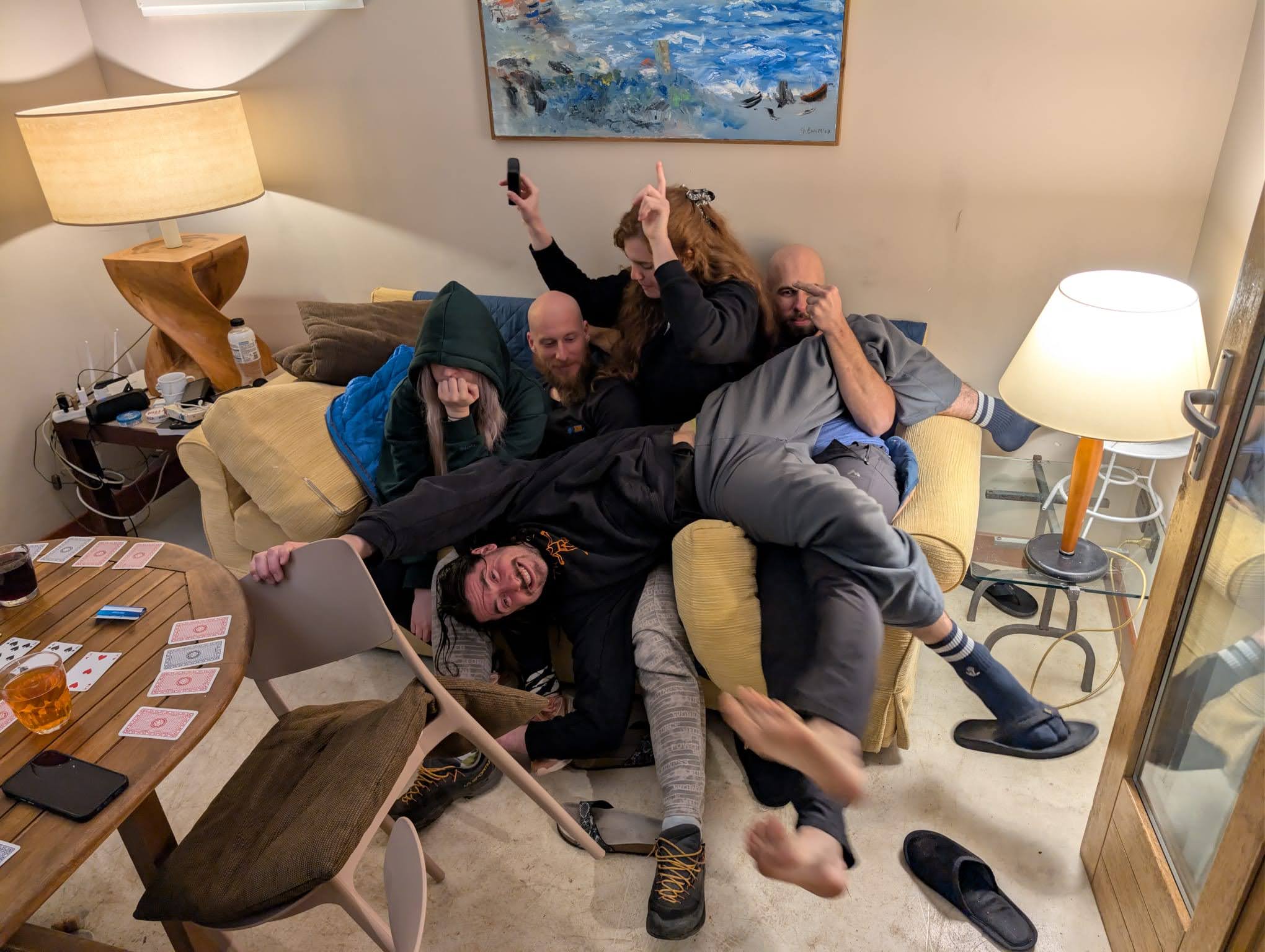 Ko sem odprl oči v novem jutru, sem ugledal stopnišče nad seboj, kot jih je verjetno tudi Harry Potter v svojem omarnem stanovanju pri svojih bunkeljskih sorodnikih. S to razliko, da je bilo meni že dejstvo, da sem v tem silnem hladu, pokrit le s tanko poletno odejico, zopet ugledal luč sveta, prava čarovnija. Nisem pa bil prvi pokonci - kaj kmalu me Inga obvesti, da sedaj niti voda ne teče več. Skoraj sem že obupal nad to našo pustolovščino, saj nas je na ta sveti dan zapustil praktično sleherni vir primarnih surovin, potrebnih za delovanje človeškega telesa.